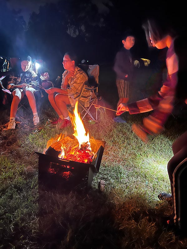 我們就靠著我們的 s’more 工廠,成功成為小朋友們最愛的阿姨😆(s’more 是美國人最愛的露營點心,作法是在一片 grain cracker 上放上一片巧克力,然後把烤過的棉花糖放上去,用棉花糖的熱度來融化巧克力,最後再放上一片grain cracker 夾起來),超級好吃😋😋😋